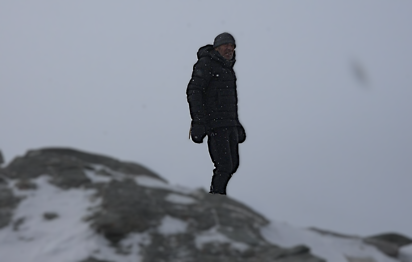 À la différence de ses expéditions précédentes, il n’est pas accompagné d’un animal : en Indonésie, il partageait ses journées avec le chien Gecko et deux chats ; dans le Rub al Khali, avec la chienne Slooki. Cette fois, l’expérience est un huis clos total, entre l’homme et la montagne.